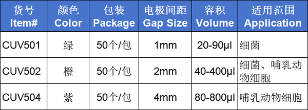 本公司出品的电极杯是少数能和进口电极杯媲美的国产品牌之一,被用来进行细菌、真菌、哺乳动物及植物细胞的电穿孔实验。它能够兼容多个品牌的电穿孔仪,包括 Bio-Rad,BTX,Eppendorf 等。
